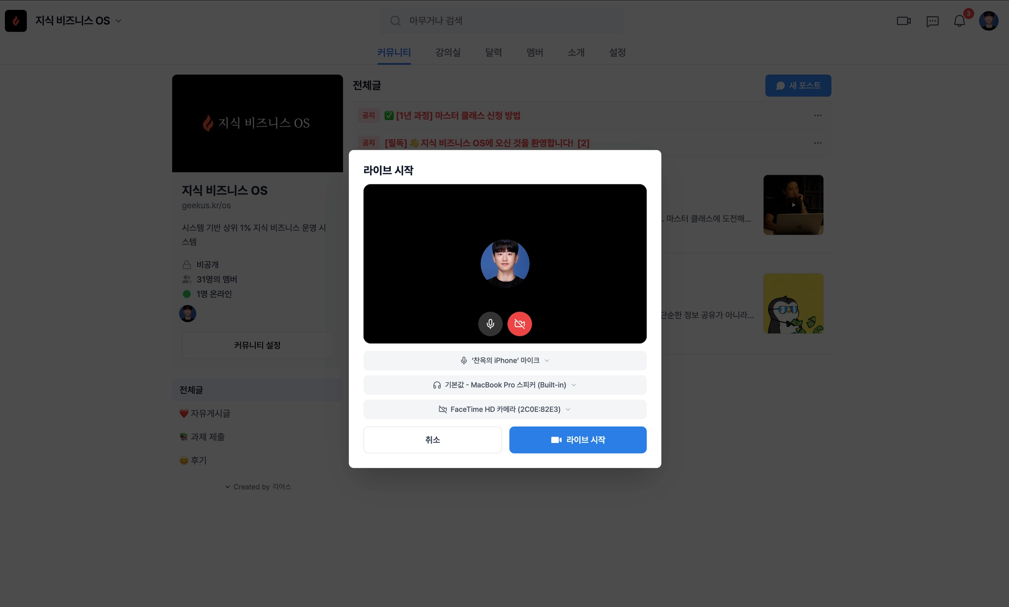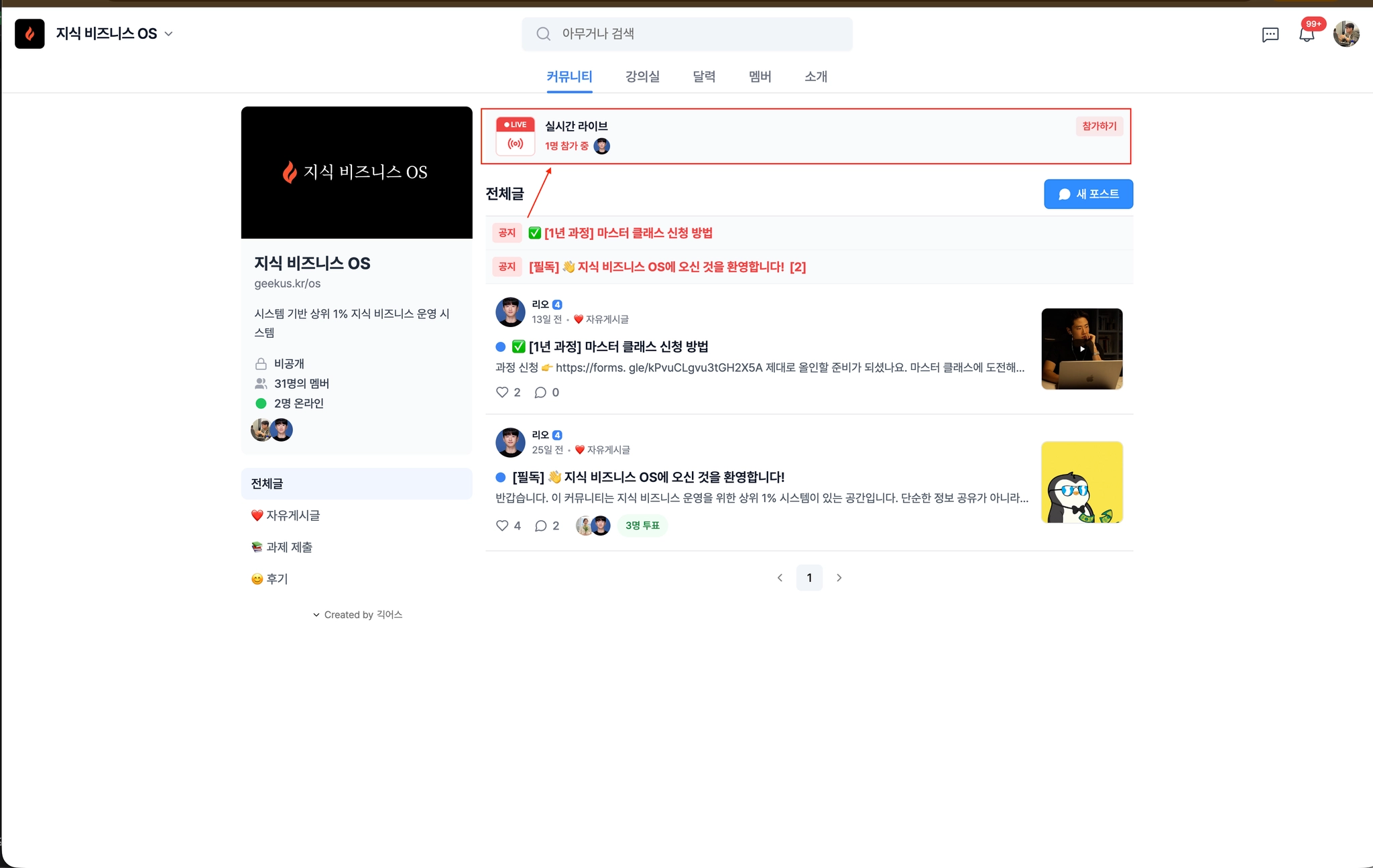 혹은 커뮤니티 내에서 ‘실시간 라이브’ 클릭을 통해서 참가 가능